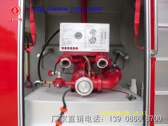 | 專用性能: | 消防泵: 常壓泵型號(hào) bs30車用消防泵 流量:30l/s 壓力:1.0mpa 中低壓泵型號(hào) cb20.10/15.30 低壓流量:30l/s/1.0mpa 中壓流量:15l/s/2.0mpa 消防炮型號(hào):sp30 水射程:≥55米 | ||