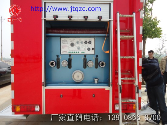 消防車泵房:中置或者后置泵,泵房左右兩側(cè)、器材箱左右側(cè)均有新款易拉高強(qiáng)度鋁合金卷簾門。