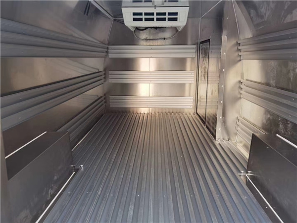 廂體:內(nèi)部空間約3.5方,內(nèi)外玻璃鋼材質(zhì),中間8cm高密度聚氨酯保溫,鋁花紋防滑底板,后門鎖件為不銹鋼。