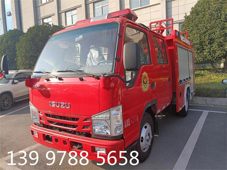 慶鈴藍(lán)牌消防車,總質(zhì)量:4360kg,總長度5490mm*寬1960mm*高2940mm。上海雄真消防設(shè)備有限公司生產(chǎn)CB10/20-XZ型消防泵,額定流量20L/S,車頂安裝成都威斯特消防機(jī)械有限公司生產(chǎn)的PS20W型車用消防炮。消防炮射程水≥50m。