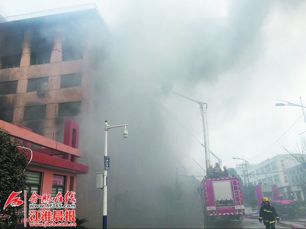 慢慢靠近現(xiàn)場后,記者看到大樓的圍墻外立著“合肥市永發(fā)塑膠有限公司”的字樣?,F(xiàn)場周邊,交警已拉起警戒線,進行交通管制。公司大門外,10多輛消防車正在緊鑼密鼓地工作著,幾十名消防官兵也在緊張地救援中。